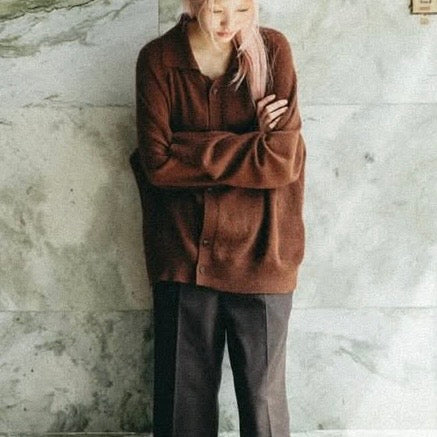 JOHN MASON SMITH / JANE SMITH - 5G REVERSE STICHES POLO COLLAR KNIT CARDIGAN - BROWN