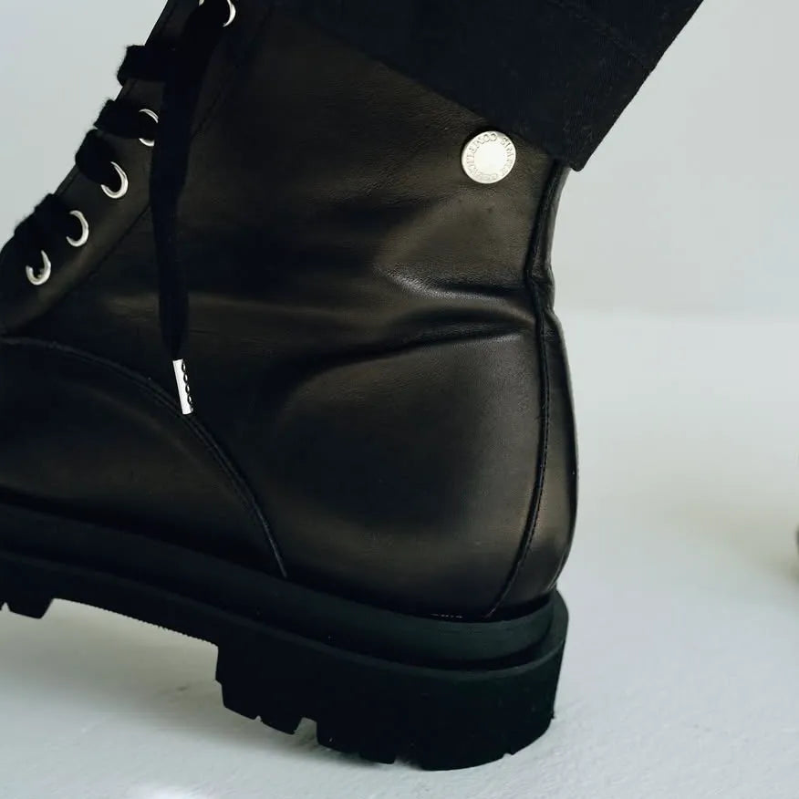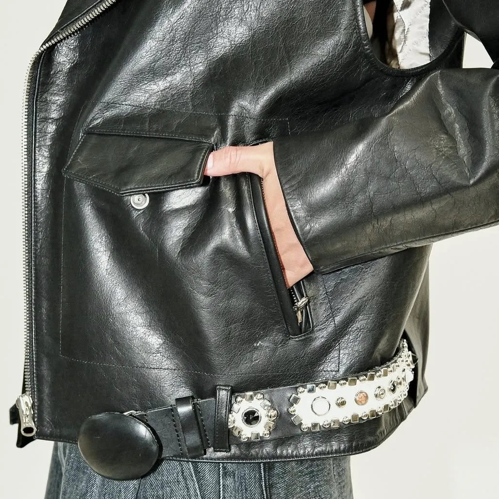 INSCRIRE - Leather Zip Up Hoodie - BLACK