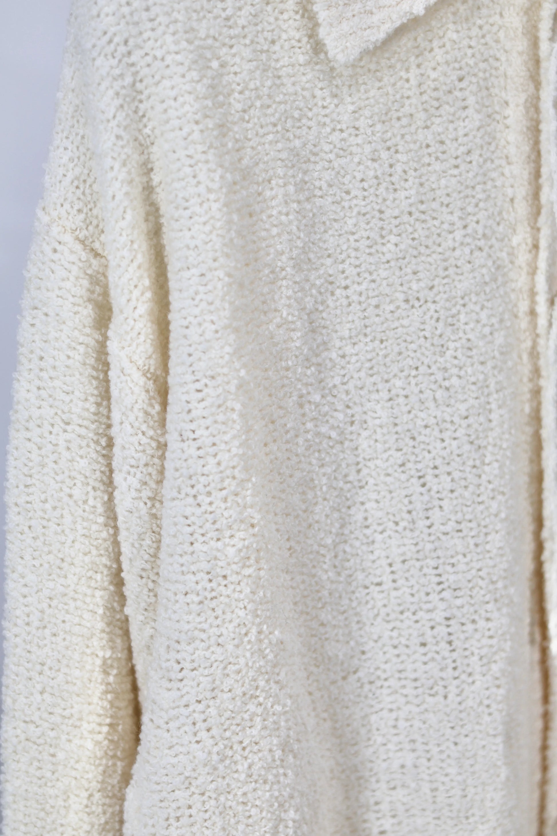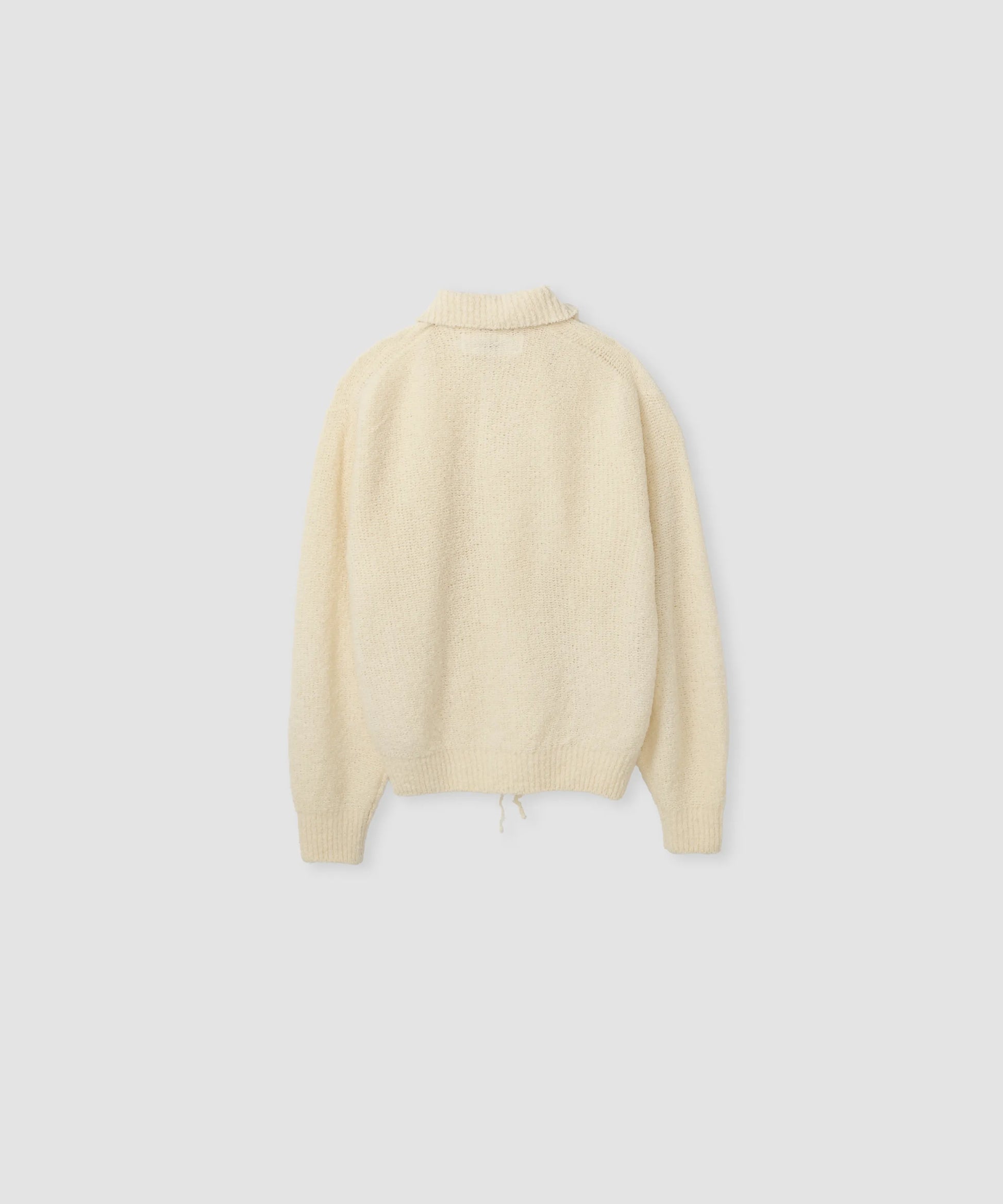 JOHN MASON SMITH / JANE SMITH - 5G REVERSE STICHES POLO COLLAR KNIT CARDIGAN - OFF WHITE
