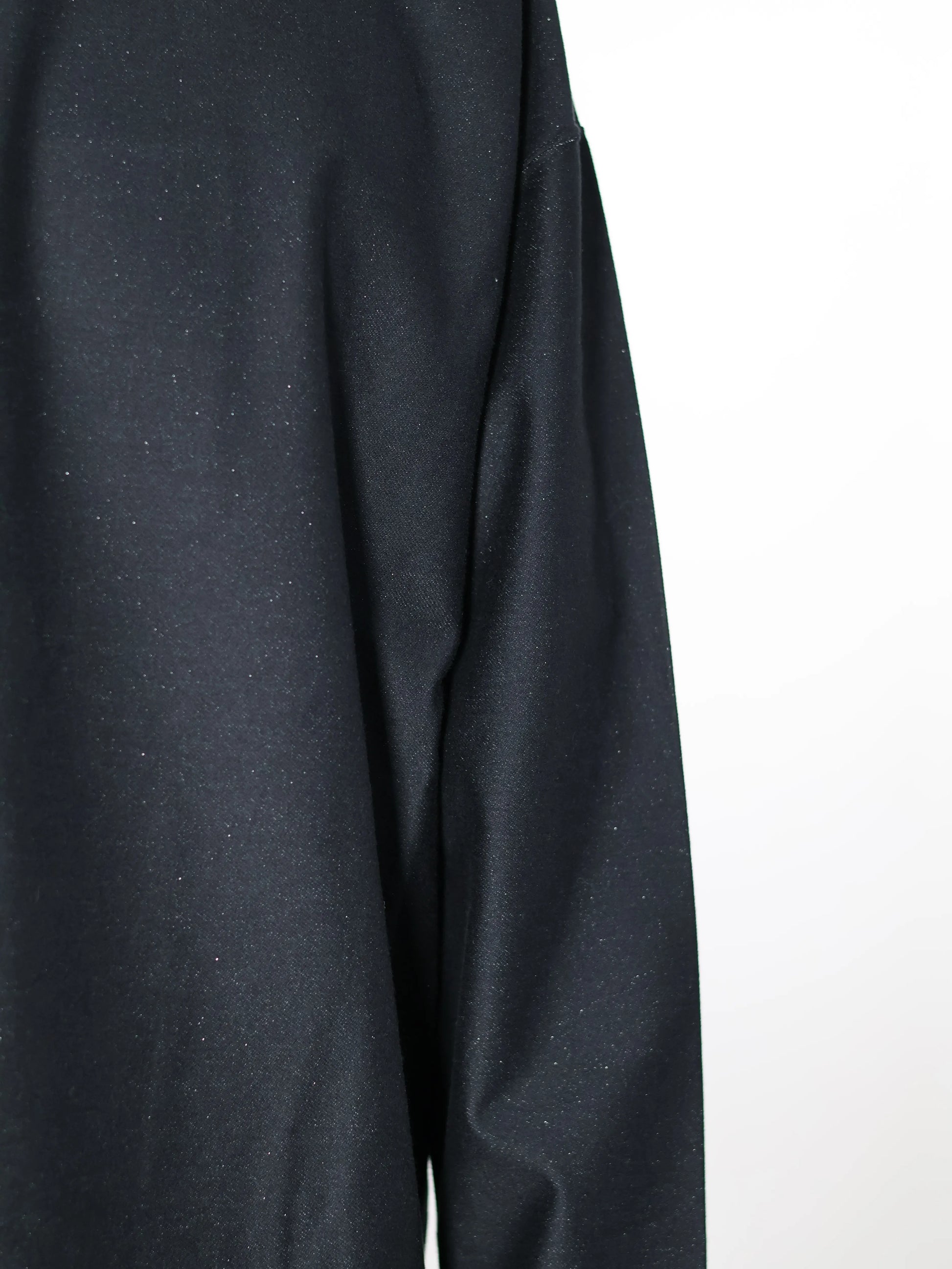 ハイゲージと相まって独特な光沢感がある素材です。その素材にラメ糸を入れ、見る角度によって