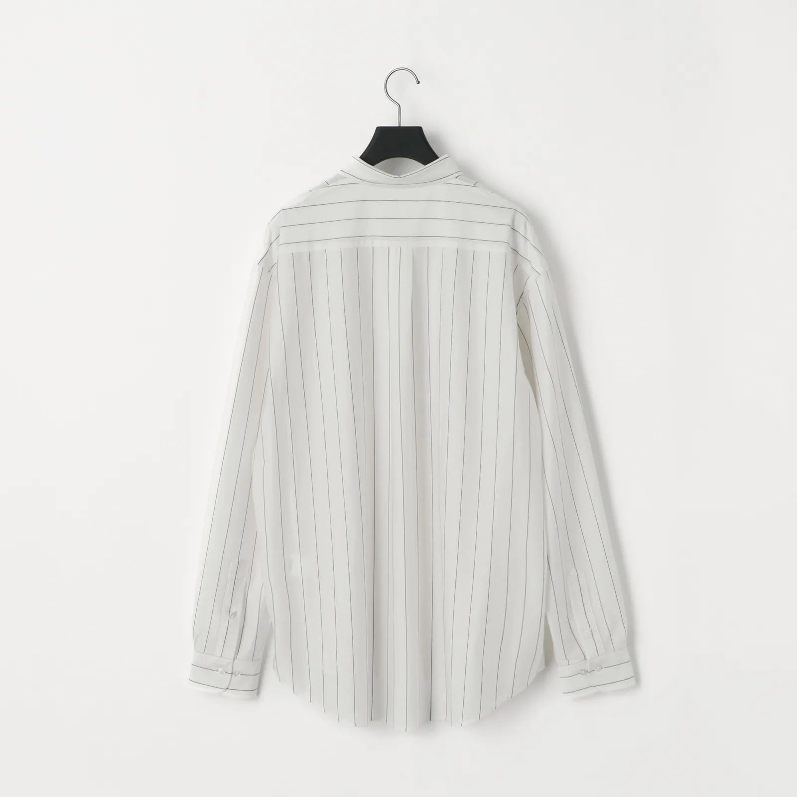 “atmosphere” 空気を纏うという名前の通り、 ゆったりとしたシルエット、素材の落ち感がわかりやすい定番シルエットのシャツです。46G という、スーパーハイゲージで、タイプライターという織物の高密度平織組織を実現。 ストレッチ性が高く一度着ると止められない着心地、そして、着用時のしわなどの形態変化も少なく、イージーケア性も高い。 ハリ感、光沢感、イージーケアを持ち併せた我々にしかできないニュースタンダードシャツ地。