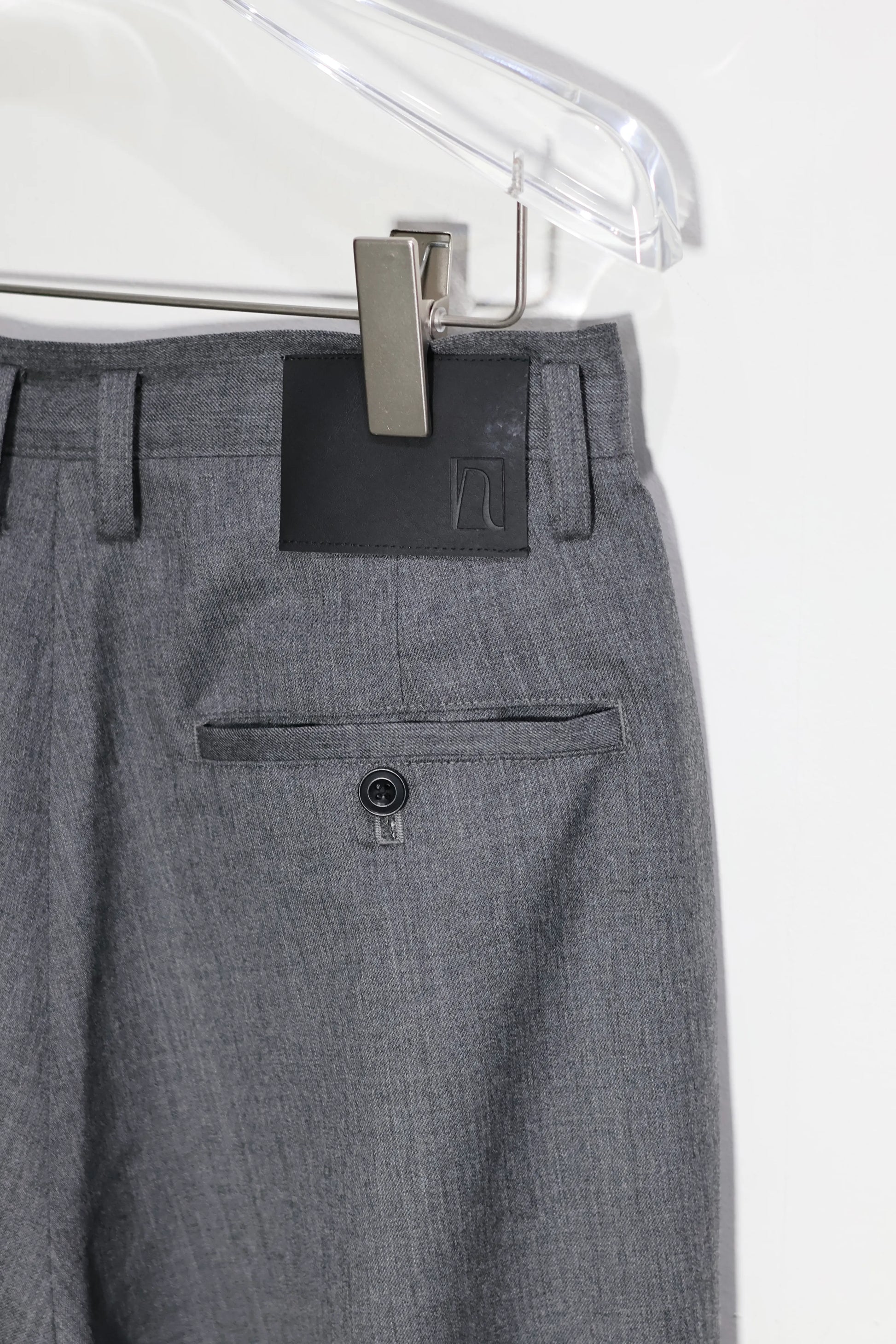 グレーという色調は、モノトーンでまとめたミニマルな装いにも、シャツやニットとのレイヤードにも自然と馴染み、スタイルの軸を整えてくれます。ウールギャバジンならではの上質な質感と佇まいは、日々のスタイリングを品良くまとめる一本です。