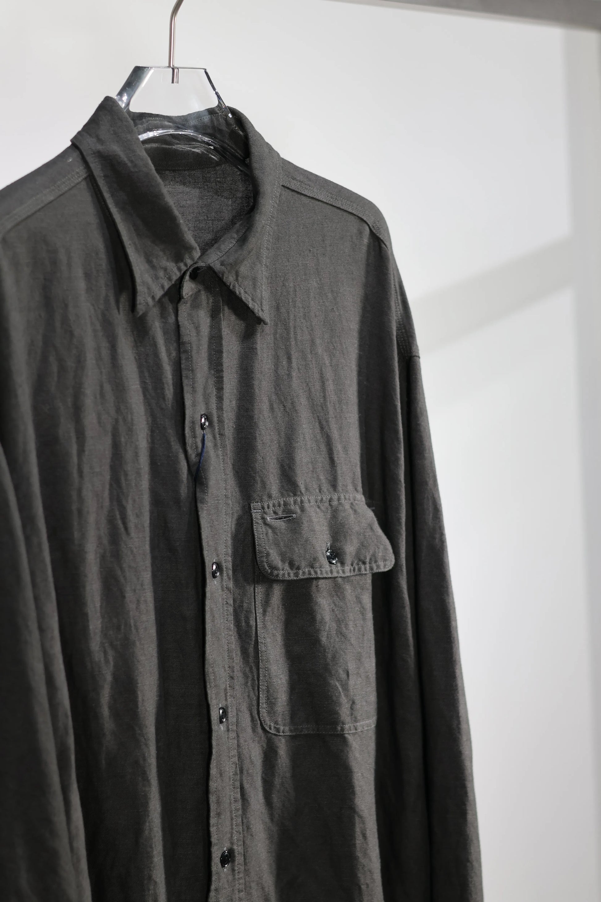 ヴィスコースとリネンの平織りの生地をオーバーダイしたワークシャツです。